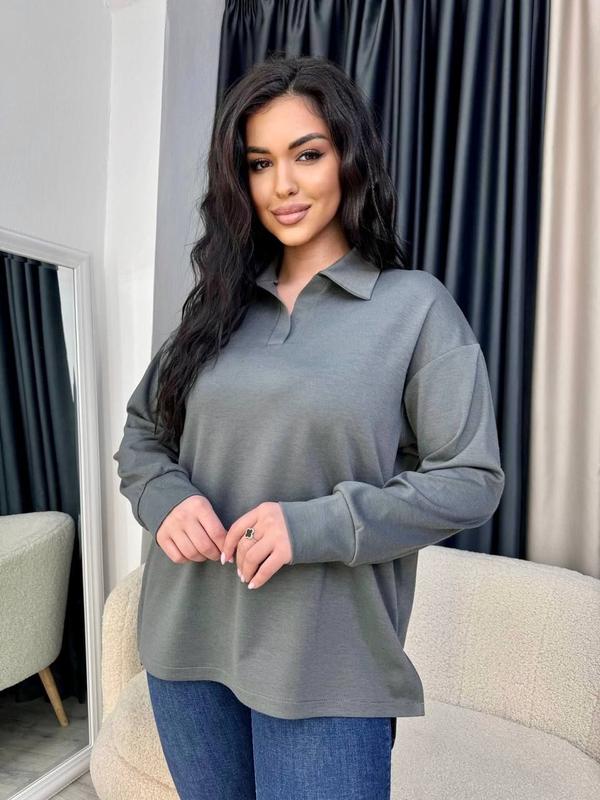 Кофтинка поло! Кофточка которая подойдет на каждый день) Универсальная, стильная вещь в вашем гардеробе Мод.209 Размеры : 48-52,54-58 Ткань: французский трикотаж Очень приятная к телу Цвет: черный, графит, молоко
