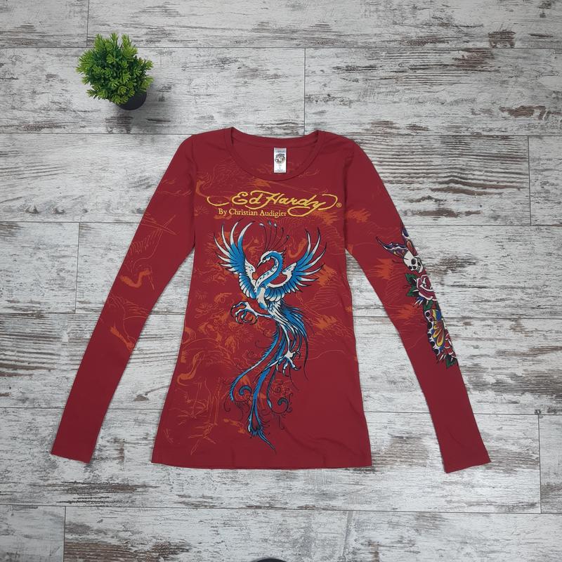Жіночий лонгслів від бренда ed hardy Стан: чудове Розмір: S Заміри: довжина 71 плечі 35 грудь 39 рукав від плеча 71 вихід 44 Мінімальний торг Відсилання на день замовлення Способи відправлення: Безпечна оплата Предоплата на карту УкрПошта повна оплата на карту