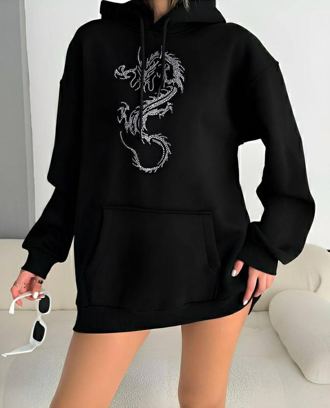 Жіночий світшот ▪️ Мод. 0230 ▪️ Тканина: тринитка на флісі, відмінної якості Туреччина ▪️ Розміри: one size 42-46 ▪️ Кольори: чорний ▪️ Ціна 420 грн ▪️Якісне пошиття Накат стрази дракон символ цього року ❤️ Длина 69 Длина рукава от плеча 72 АнЛар