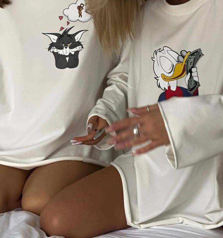 Частка дитинства, яка, як нам здається, наповнює душу світлом навіть у найтемніші часи. Ідеальний лонгслів на весну. Тканина: турецький кулір. Колір: молоко-принт Скрудж, Том. Розмір: 42-46 (oversize).