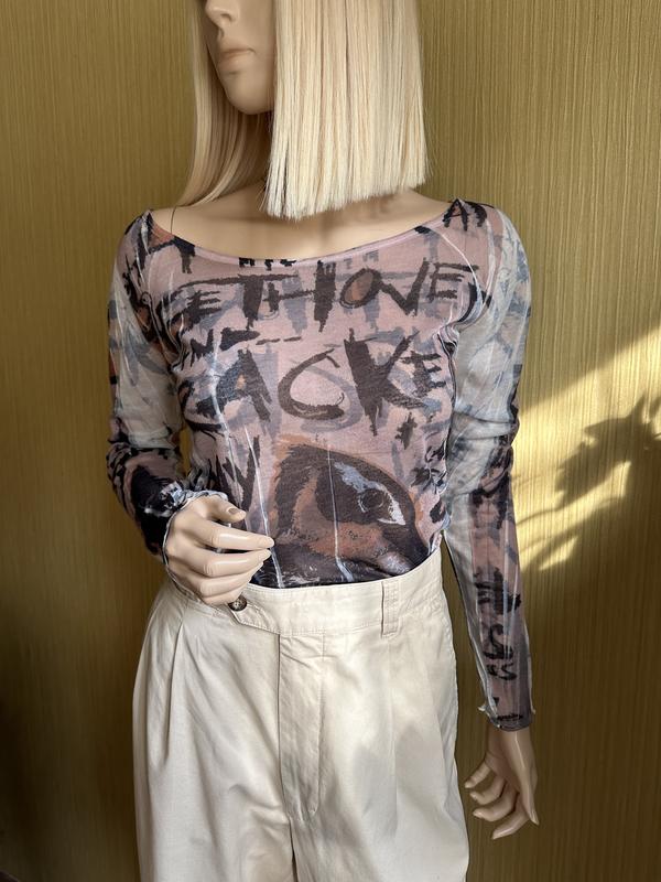 Очень крутой лонгслив, немного прозрачный. Состояние нового. Размер указан S, надет на манекен в размере М