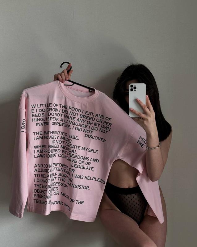 💜Лонгслів з накатом 💸Ціна: 780 грн 💎Мод : 802 🪡Тканина: турецький кулір (100% хлопок ) з якісним накатом 📏Розмір: 42-46 оверсайз 🌈Колір: рожевий, графіт 📌Фото вживу