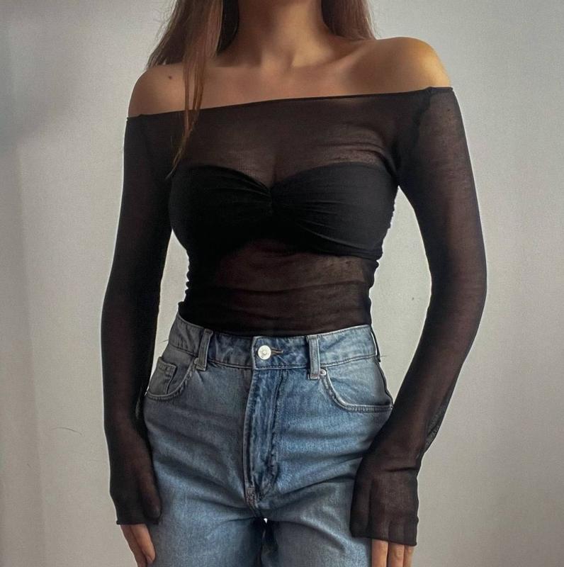 Кофтинка з відкритими плечима. Тканина добре тягнеться, мʼякенька. Кольори: чорний, білий Розмір М : об'єм грудей 89-99 см Є обмін та повернення