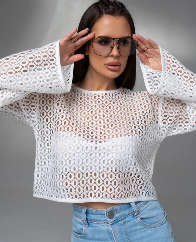 Найхітовіша новинка сезону🔝 Напівпрозорий лонгслів з мережива макраме🔥 Модель з довгими рукавами та прямим вільним кроєм❤️ Кольори: чорний, білий Матеріал мереживо макраме Розміри Накладений платіж з передоплатою 200грн