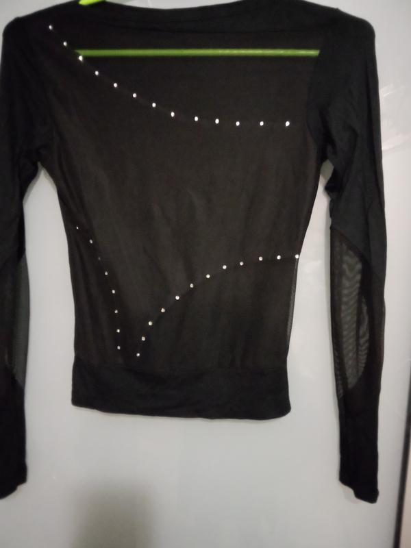 кофтинка интересный дизайн сеточка и стразы ✨ спереди и рукава спинка полностью хлопок в идеальном состоянии 📏на размер 38-40-42 📏📏замеры плечи 37 см под рукавами 38см тянется до 44 длина 52 см длина рукава от плеча 60 см