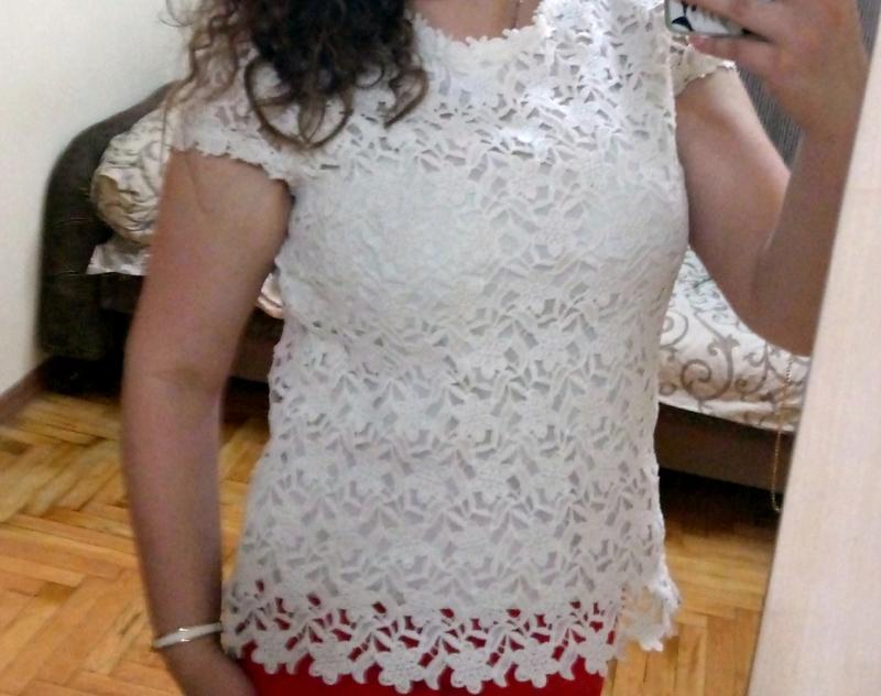 Біла мереживна з коротким рукавом Olko ззаду мереживна спинка (без підкладки) дуже приємна та зручна в носінні розмір L, можна вільно на М