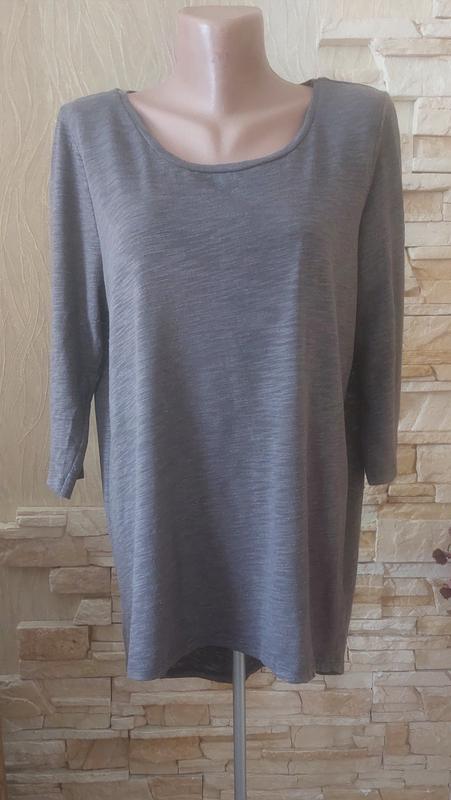 Лонгслів на літню пору. Рукав 3/4 Перед коротший, зад подовжений.На спинці імітація кнопок. Довж.переду 69 зад.74 довж.рукава 44. пог. 56 Тканина тягнеться