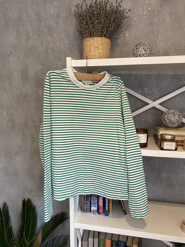 Тельняшка в зелену смужку від H&M Розмір xs, на зріст 160 см, але можно і менший. Довжина від горловини55 см, ширина 46 см, довжина рукава 62 см