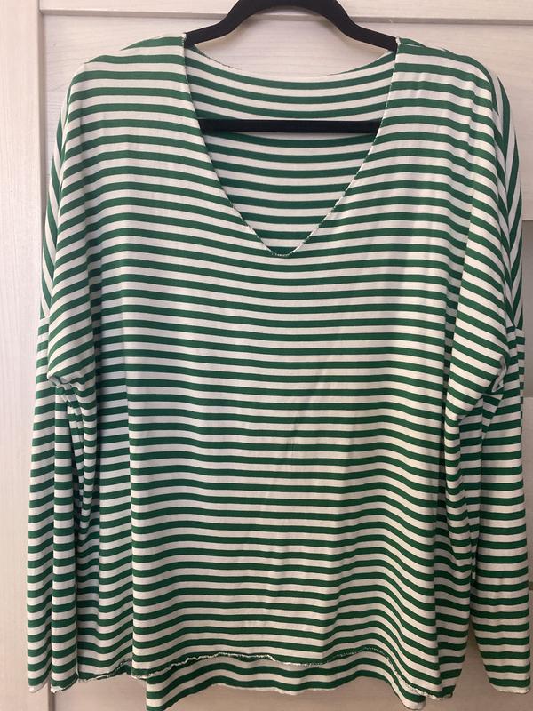 Довжина 65/68 см, подовжена ззаду. Оторочка внизу і горловина срібною ниткою. Дуже приємна до тіла. Ширина 58 см. Нв бірці М, великомірить на Л