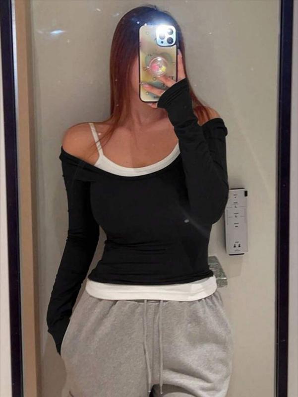 Лонгслів 2в1 Розмір 42-46 единий Нижня майка по груді тягнеться до 100 см загальна довжина 58 см Верхній лонгслів по груді 74 см тягнеться до 104 см довжина рукава 64 см загальна довжина 50 см Тканина:трикотаж масло +рубчик Колір:чорний+білий, сірий+білий Лонглів 2в1 с комбінованим та спокусливим вирізом відмінно доповнить ваш стиль та поєднуватиметься з будь-якими речами з вашого гардеробу🫶
