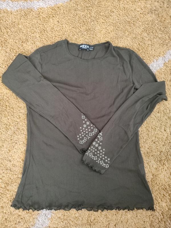 Лонгслів в сіточку.Колір хакі.Розмір с,м.Вишивка на рукавах.Фірма Mexx.