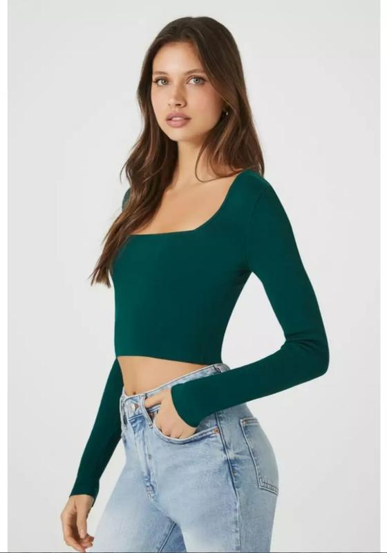 Жіночий темно-зелений топ з довгим рукавом.кофтина з квадратним вирізом.