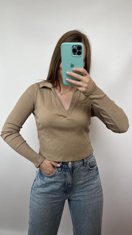 Кофтинка з комірцем у рубчик 🤎 Hm Розмір: s/m Стан: новой з пломбою від бірки 93% viscose