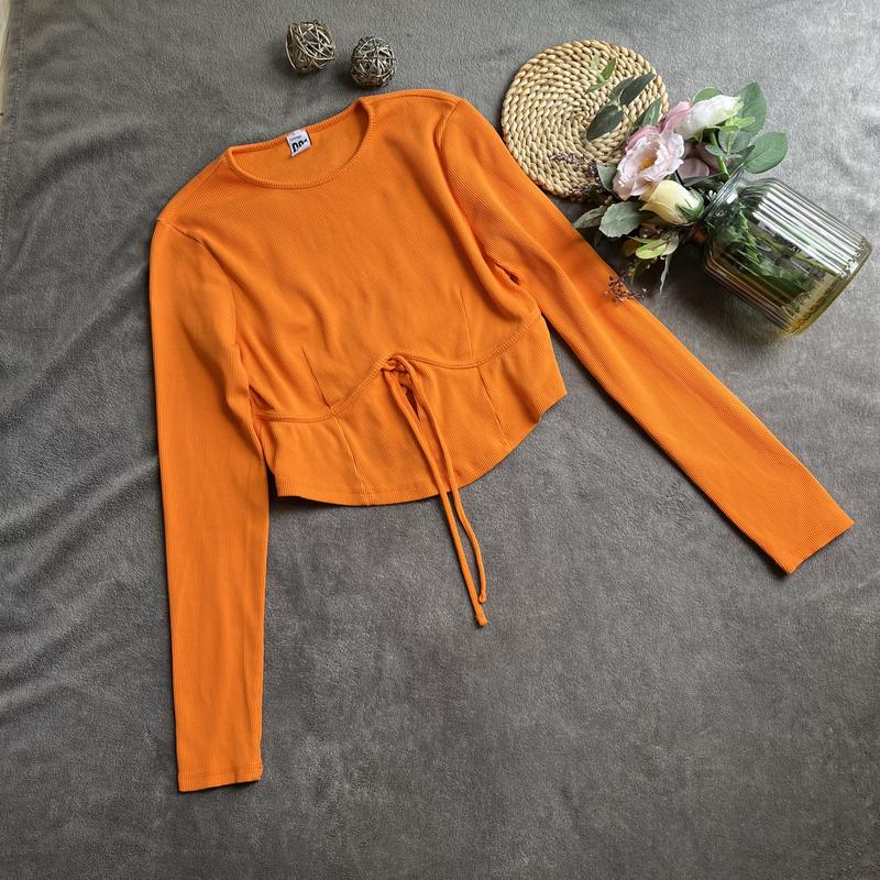 George p. S-M Стильний лонгслів в новому стані з куліскою в рубчик, тканина бавовна, тканина добре тягнеться, на грудях витачки Довжина 44 см Пог 38 см тягнеться до 52 см Довжина рукава 58 см (070742)