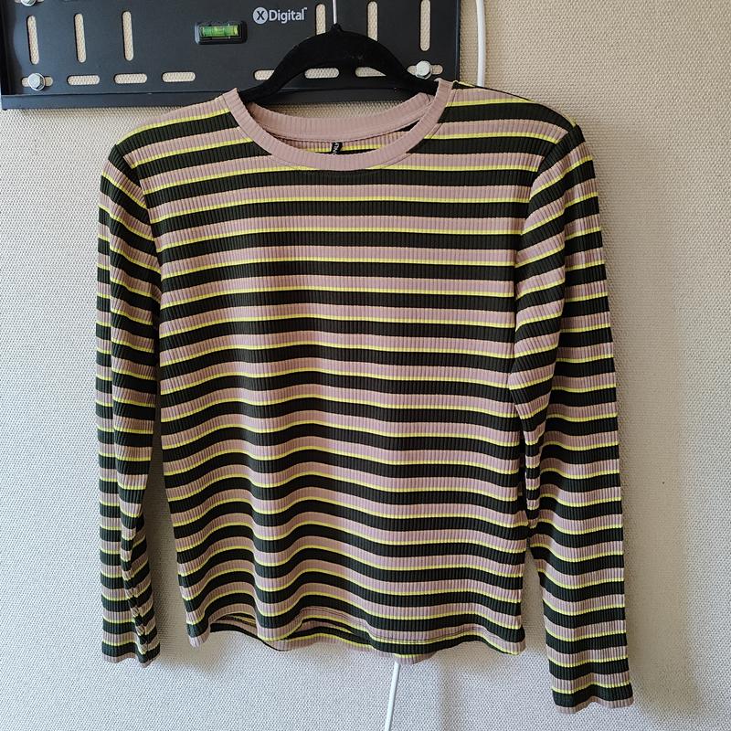 Натуральный лонгслив в рубчик.Присущая золотистая люрексовая полоска,фото не показывает.Пог-48,длина-56.Не носится.