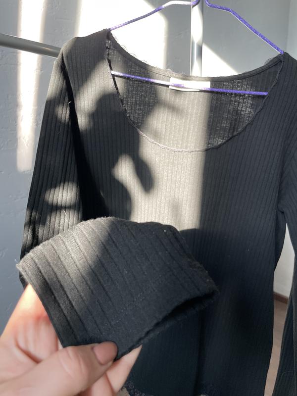Черная приталенная кофточка с кружевом и глубоким декольте. Смотрите также нежную одежду на моей странице 🥰