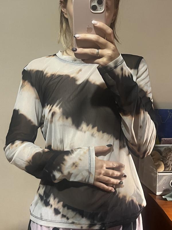 Напівпрозорий лонгслів з незвичним принтом. Вказаний розмір L, але підійде і на менші розміри