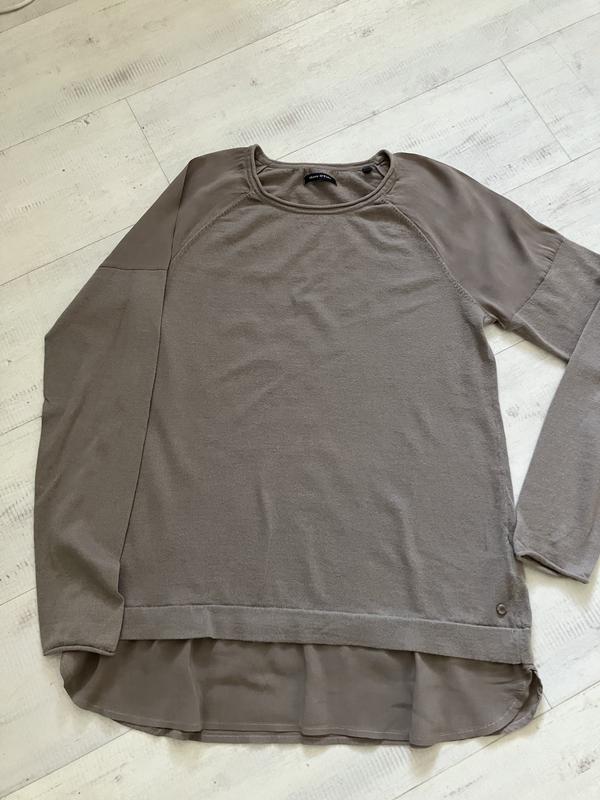 Цікавенька кофта від Marc O’Polo, боді 50/50 вовна та бавовна, вставки рукава та низу віскоза та модал. Довжина 69 (повністю), пог 46, низ 50 ( по трикотажу) довжина рукава з плечем 72, ширина горловини 16