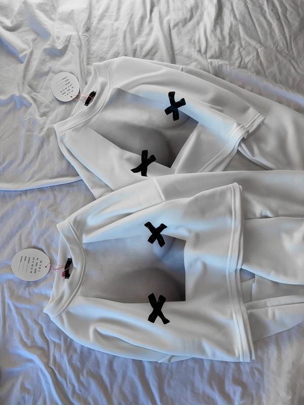 😘😘😘😘😘😘😘 Кроп Свитшот ХХ __________________________________ ▫️Мод: 0690 ▫️Тканина: Двухнитка петля ▫️Цвета: Белый ▫️Размеры: 42-46 (one size)