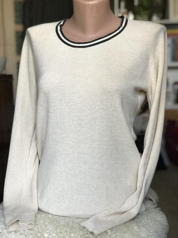 «Безпечною» оплатою тимчасово не продаю! Дякую за розуміння Молочний відтінок білого. Дорогий бельгійський бренд, якість відповідна Довжина по спині спереду/ сзаду 57/61 Ширина під пахвами 40 Плечі 35 Рукав від плеча/ від пахви 58/44