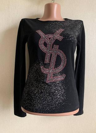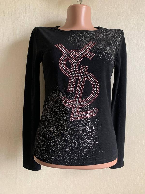 Дуже гарна якість . Стрази ніколи не відпадуть . У мене декілька подібних речей . Довжина 55 см , груди 42 см и ще тягнеться до 48 см , рукав 60 см . Спинка чорна