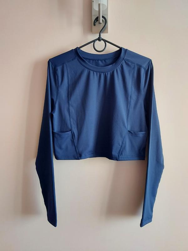 Синий укороченный лонгслив shein с карманами, кроп топ дайвинг, р. l