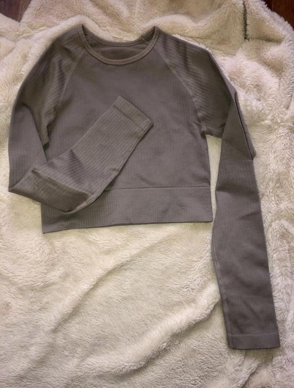 Кроп топ з довгим рукавом в рубчик шоколадний мокко Новий від набору Розмір С Тугий рубчик