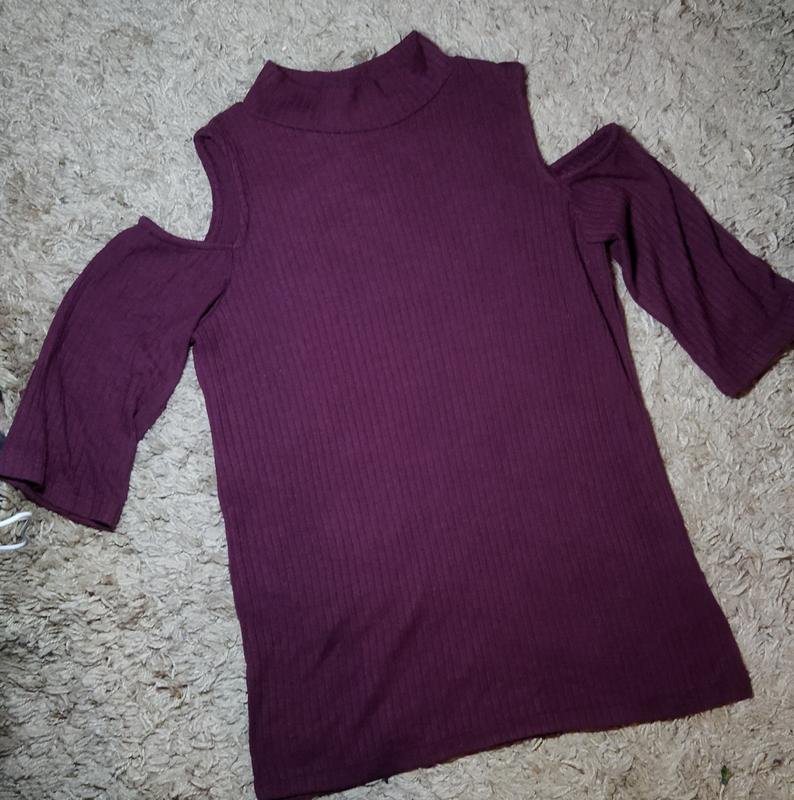 Кофтинка у рубчик з розрізами на плечах Трендовий колір бордо Розмір M-L