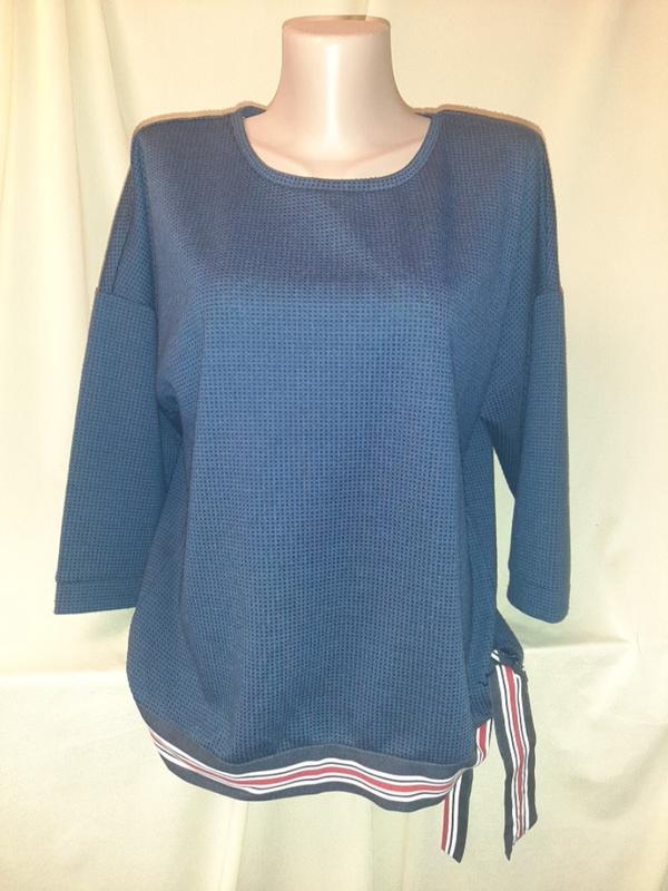 Синяя интересная кофта, размер М: ПоГ -59cм, рукав 3/4 - 55см от горловины, длина - 62см, состав -полиестер 88%, лен 10% и емкаястан 2%