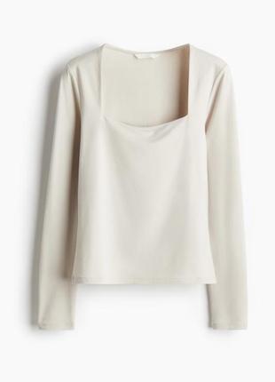 Базовый лонгслив молочного цвета, размер М. Стан идеал. Вырез декольте - квадрат.