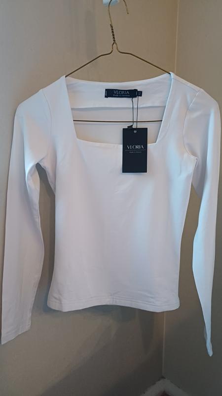 Лонгслів білого кольору з квадратним вирізом, щільна тканини що не просвічується . Бажано на ОГ до 88 . Точніні заміри чи додаткові фото пишіть скину. Склад бавовна 95% еластан 5%. Український бренд Vloria. На фото такий самий лонг тільки чорного кольору для прикладу, дуже якісні і нарядні. Продаю білий так як не підійшов по розміру, новий з біркою. Купувала за 749 грн., віддаю дешевше, хоча як глянете на якість то зрозумієте зо того вартий☺️