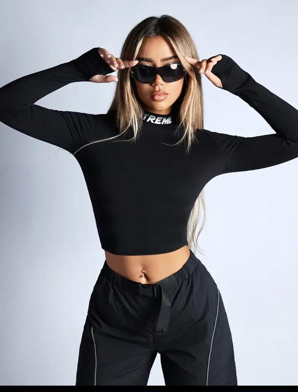Дуже стильний та універсальний лонгслів. Розмір М Параметри: Бюст: 84-90 см Талія : 70-75 см Довжина рукава: 64 см Довжина виробу: 41 см 95% поліестр, 5% еластан