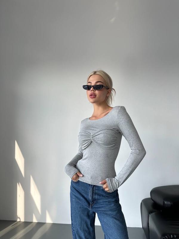 Новинка В наявності Тканина :віскоза Розмір :42-46 Кольора : білий , чорний , сірий меланж Фото реал Хітовий лонгслів з імітацією бра🤩🤩🤩 Видшили з м’ягенької та еластичної тканини❤️