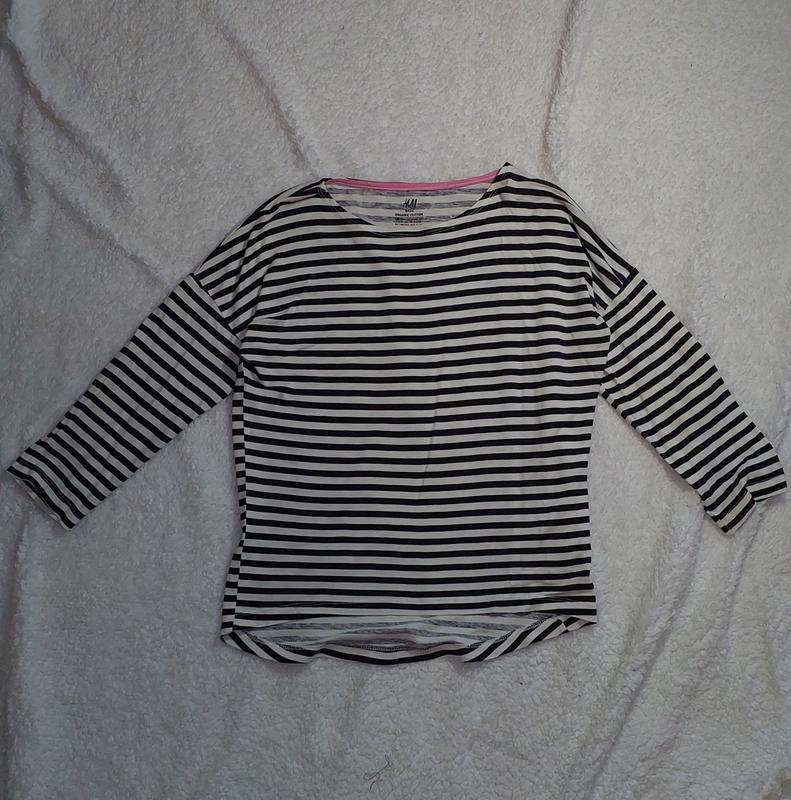 Трендова смугаста кофта H&M з вкороченим рукавом у ідеальному стані. Довжина - 50 см, довжина рукава - 30 см, напівобхват грудей - 44 см.