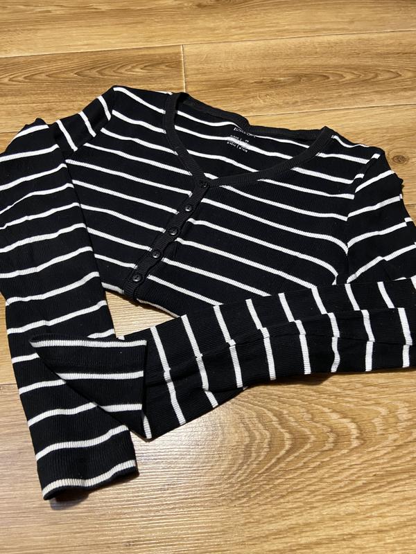 Жіноча водолазка в рубчик чорного кольору в білу полоску, розмір M