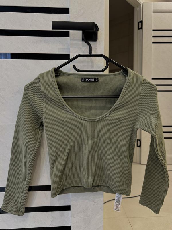 Ніжний оливковий колір. Розмір XS-S Кофтинка укорочена, як топ Довжина — 38 см Довжина рукава — 47 см ПОГ — 29 см Тканина тягнеться