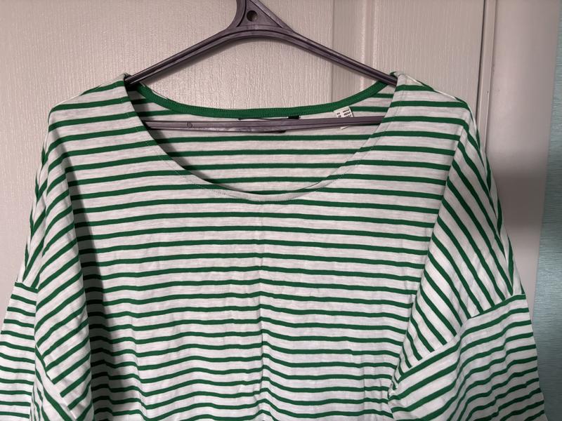 Трендовий зелений тільник вільного крою від ESSENTIALS, великий розмір, рукав 3/4 Розмір виробника евро48/50 Заміри Пог 73 см Низ 70 см Довжина 63 см