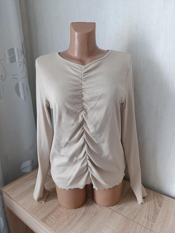 Жіноча кофта,лонгслів,приємна тканина на дотик,фірма Sinsay,в дуже хорошому стані,але на вирізі є невеликий фабричний брак(фото 2),при носінні не дуже помітний,розмір XL,добре тягнеться,колір беж.