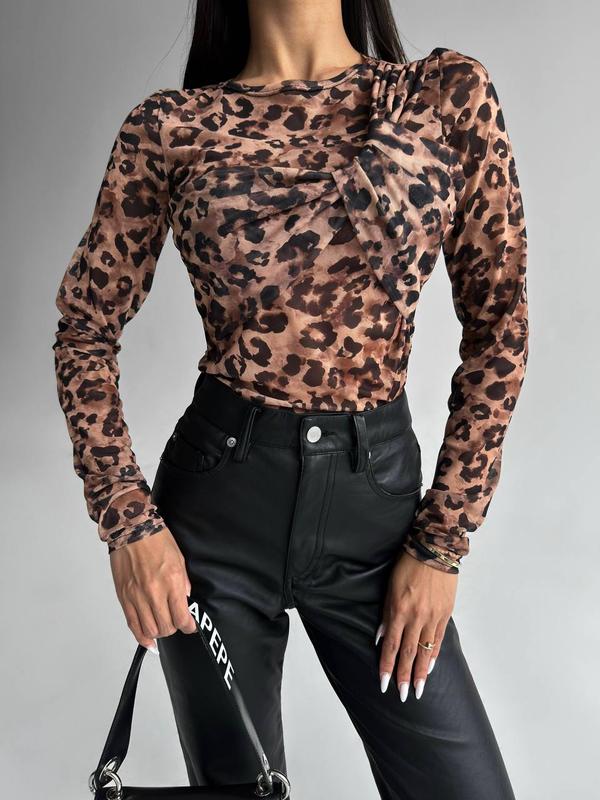 Лонгслів ▫️Тканина - стрейч сітка ▫️Розміри - 42-46 ▫️Кольори - принт лео 🔝Вони ідеальні 😍 Тренд цього сезону - топи сітка з імітацією ліфа, доповнять будь який ваш образ 🔥 Тканина дуже приємна до тіла