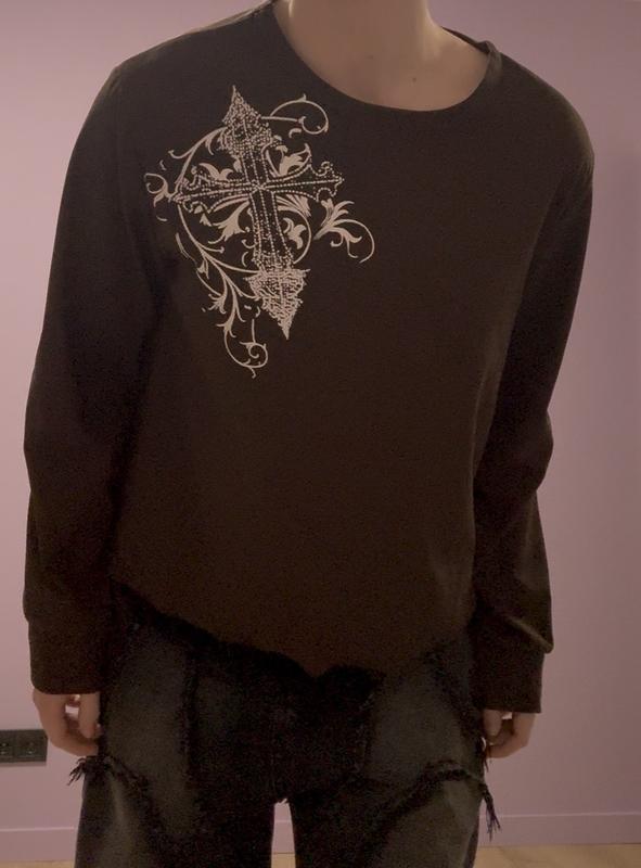 Коричневая кофта оверсайз с малышом графического креста в стиле гранж