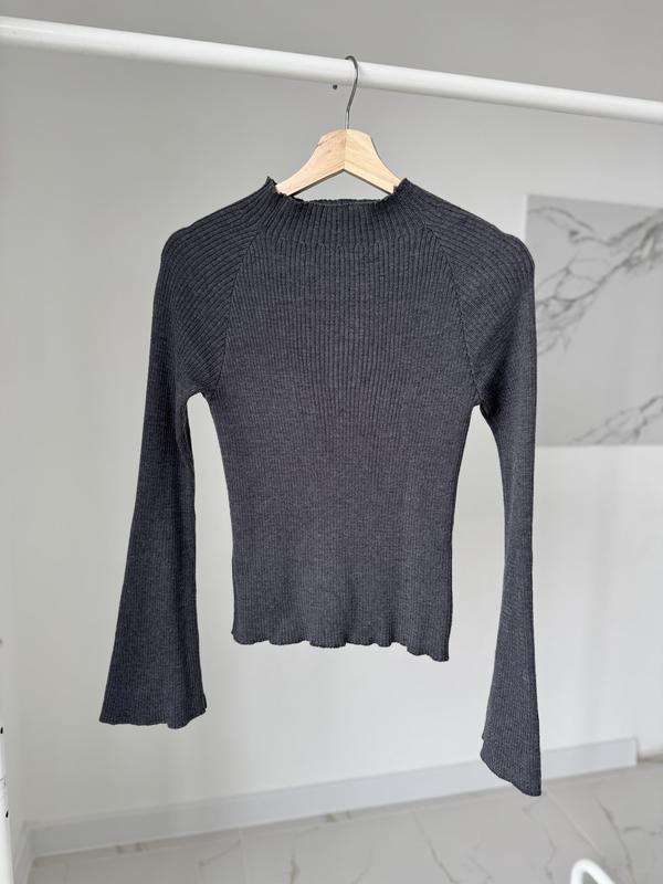 Трикотажний лонгслів в графітовому кольорі з розклішоними рукавами Дуже гарна якість Розмір Xs/s
