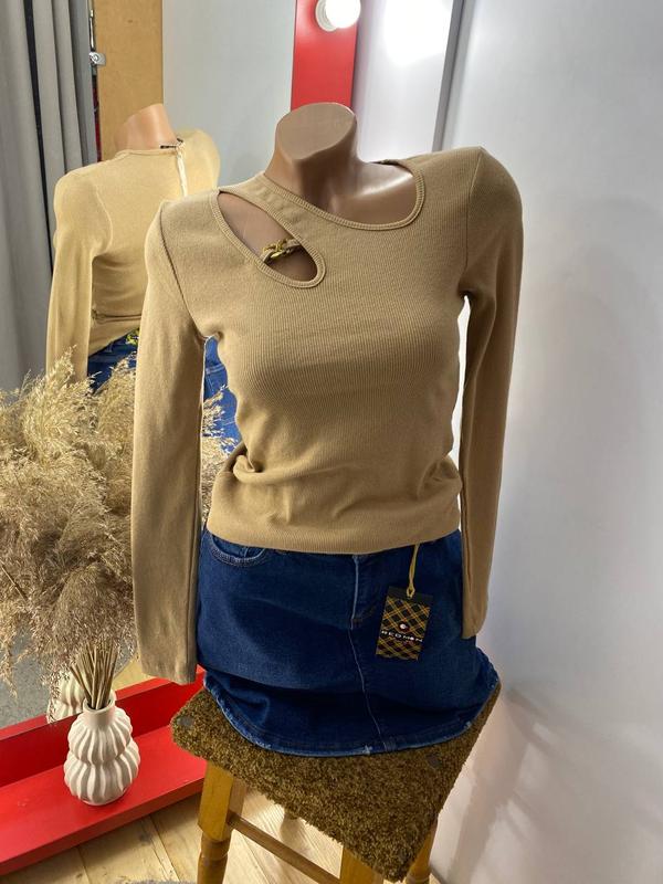 кофта по фігурі в рубчик розмір S та М довжина по спині 55см., півобхват грудей 34см., низ 35см., довжина рукава від горловини 70см., гарно тягнеться та сідає по фігурі.