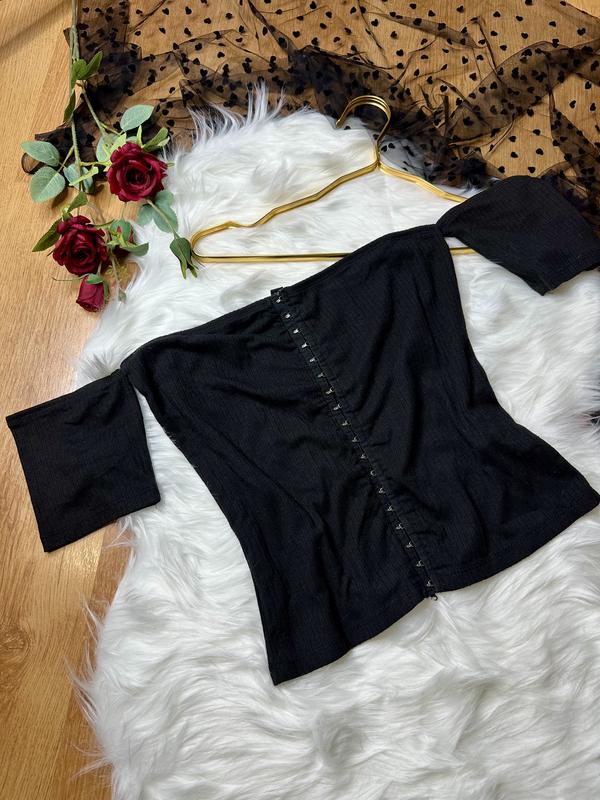 Кофтинка на застібках та з відкритими плечима, маленькі рукави які додають стилю кофтинці!