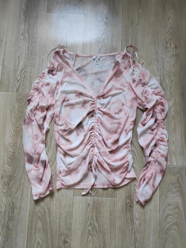 Розмір L-XL, на М сяде під майку як оверсайз. Заміри: плечі приспущені, десь 44 см, груди 47, по спинці 56.5 см.