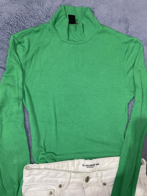 Лонгслів жіночий зелений у рубрик на розмір s. Без недоліків, в ідеальному стані Заміри: плечі - 39 см ог - 72-90 см от - 70-80 см Довжина рукава - 61-62 см Довжина лонга - 56 см Дуже добре тягнеться