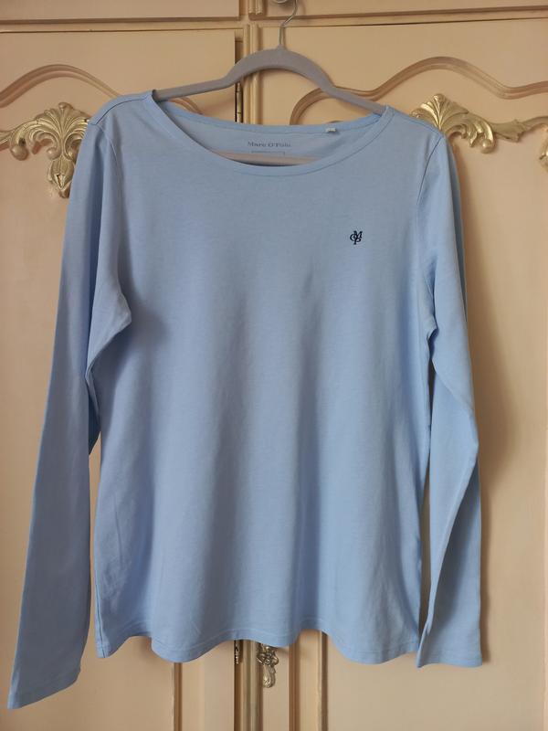 Базовий ніжно - голубий лонгслів, розмір L, підійде і на М, Пог 51см, плечі 42см, рукав 66см, довжина 63см, склад:100% котон, новий, без паперової бірки.