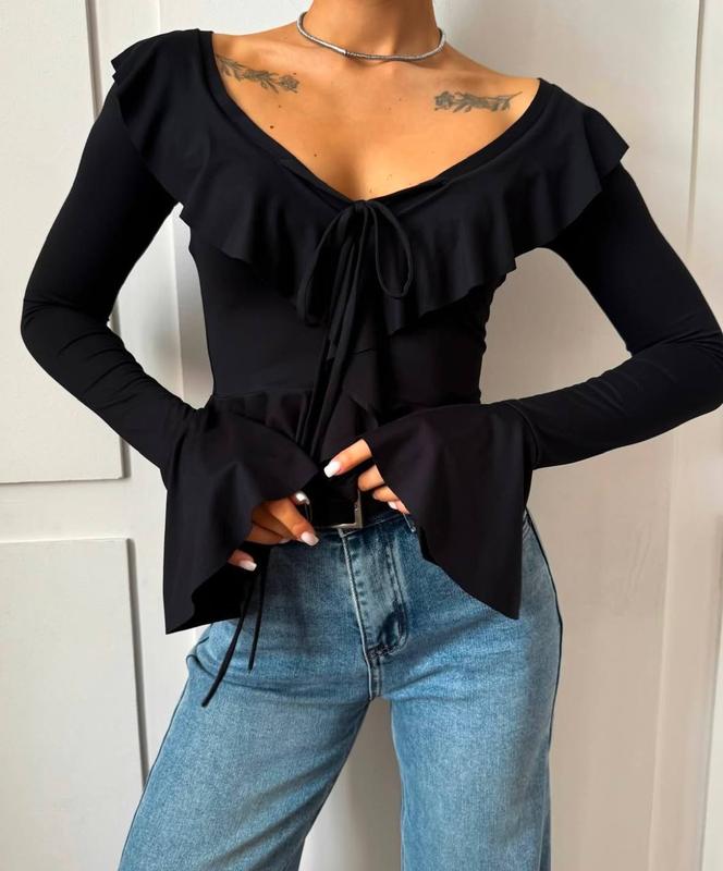 🖤 Лонг з рюшами ▫️ Ціна: 550 UAH ▪️ Тканина: Мікродайвінг ▫️ Колір: Чорний | Шоколад ▪️ Розмір: 42-44 | 44-46