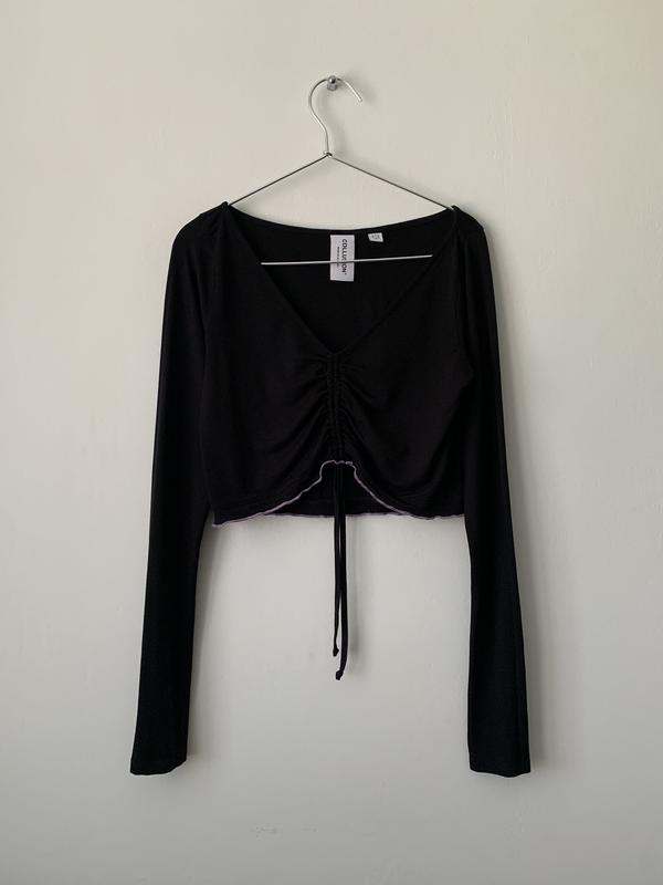 Топ з затяжкою спереду collusion чорний короткий топ довгий рукав укорочений лонгслів затя...