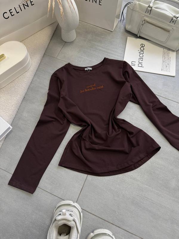Жіночий лонгслів лонг кофта з вишивкою написом лонгслів для важливих справ оверсайз вільно...