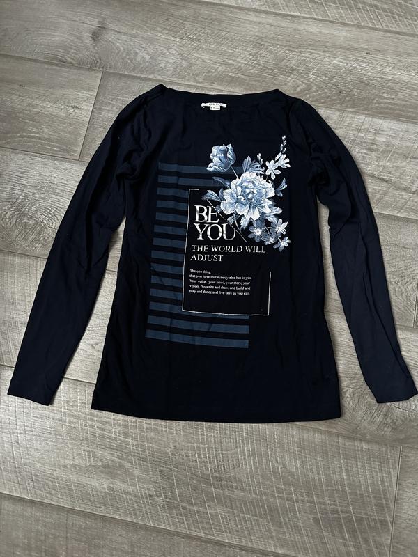 Лонгслів в розмірі “XS” , але також сяде на розмір “S” . В гарному стані, був одягнутий пару разів. На фото виглядає трохи темнішим, колір виробу темно-синій.
